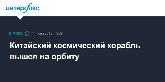 Пекин. 11 июня. NTERFAX.RU - Китайский космический аппарат "Шэньчжоу-10" с тремя космонавтами на борту во вторник вышел на расчетную орбиту, сообщает центральное телевидение КНР.