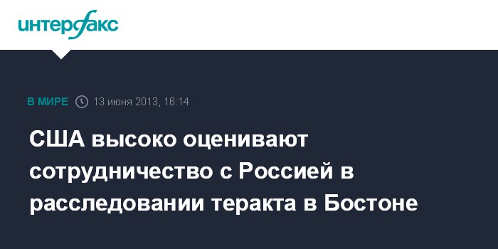 Москва. 13 июня. INTERFAX.RU - В Вашингтоне удовлетворены уровнем сотрудничества с Москвой в расследовании трагедии в Бостоне, заявил посол США в Москве Майкл Макфол.