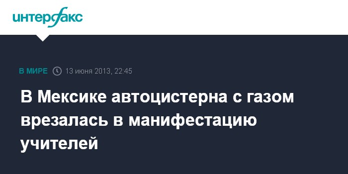 Мехико. 13 июня. INTERFAX.RU - Автоцистерна с газом врезалась в пост оплаты проезда на автомагистрали в мексиканском штате Мичоакан, где местные преподаватели уже вторые сутки проводили акцию протеста, передает в четверг газета "Универсаль".