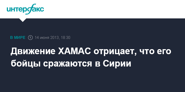 Иерусалим. 14 июня. INTERFAX.RU - Глава правительства ХАМАС в секторе Газа Исмаил Ханийе в пятницу опроверг сообщения о том, что бойцы этого палестинского движения участвуют в сирийском конфликте.