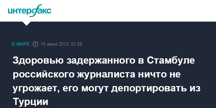Здоровью задержанного в Стамбуле российского журналиста ничто не угрожает, его могут депортировать из Турции