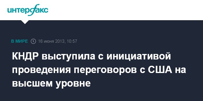 Сеул. 16 июня. INTERFAX.RU - Северокорейские власти предложили США провести переговоры на высшем уровне, говорится в заявлении Государственного комитета обороны КНДР, распространенном в воскресенье. "Мы предлагаем провести переговоры на высшем уровне между КНДР и США, чтобы смягчить напряженность на Корейском полуострове и обеспечить мир и стабильность в регионе", - отмечается в заявлении.