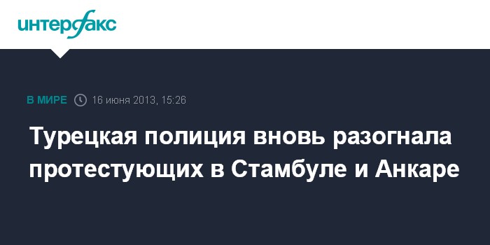 Стамбул. 16 июня. INTERFAX.RU - Турецкие стражи порядка вновь применили водяные пушки и слезоточивый газ для разгона манифестантов в Стамбуле, передает в воскресенье агентство AP. Столкновения между полицейскими и демонстрантами произошли на улицах, прилегающих к центральной площади Таксим и парку Гези.