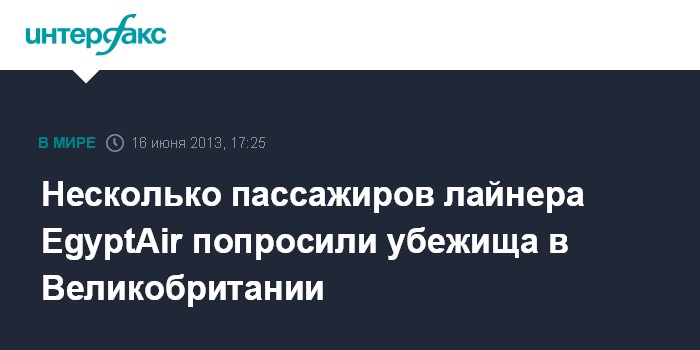 Лондон. 16 июня. INTERFAX.RU - Пять из 300 пассажиров лайнера египетских авиалиний EgyptAir обратились к британским властям с просьбой предоставить им убежище, сообщила в воскресенье журналистам неназванный представитель полиции Шотландии.