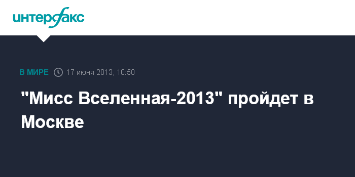 Москва. 17 июня. INTERFAX.RU – Конкурс "Мисс Вселенная" в этом году пройдет в российской столице, сообщало агентство Reuters , ссылаясь на заявления американского бизнесмена Дональда Трампа в финале "Мисс США".