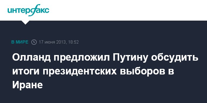 Олланд предложил Путину обсудить итоги президентских выборов в Иране