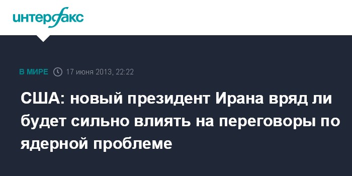 США: новый президент Ирана вряд ли будет сильно влиять на переговоры по ядерной проблеме