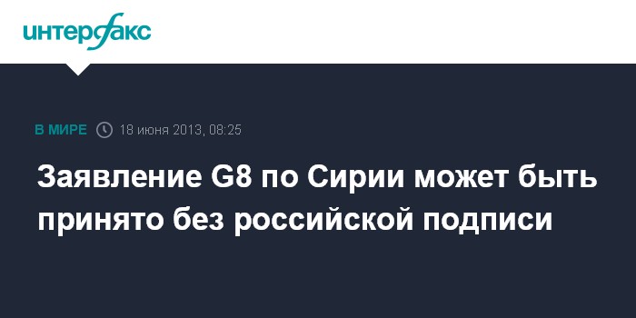 Лох-Эрн. 18 июня. INTERFAX.RU - Семь стран "группы восьми" могут принять заявление по Сирии без России, если российский президент Владимир Путин не согласится с их предложениями, сообщили западные СМИ со ссылками на мнение британских официальных лиц.