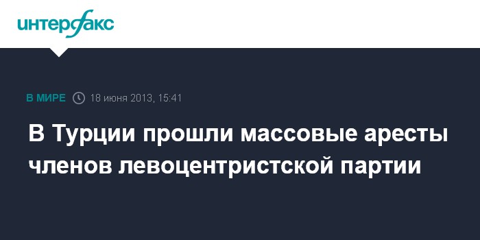 Стамбул. 18 июня. INTERFAX.RU - Турецкая полиция в ходе спецоперации провела обыски в домах и аресты 90 членов левоцентристской Социалистической партии угнетенных (СПУ), принимавшей активное участие в антиправительственных протестах, передает во вторник турецкое телевидение.