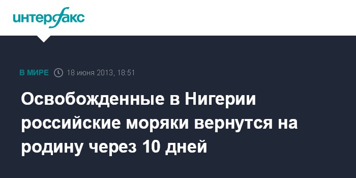 Освобожденные в Нигерии российские моряки вернутся на родину через 10 дней
