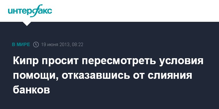 Кипр просит пересмотреть условия помощи, отказавшись от слияния банков