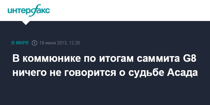 Лондон. 19 июня. INTERFAX.RU - В принятом по итогам саммита лидеров стран-членов "группы восьми" коммюнике ничего не говорится о возможном будущем сирийского президента Башара Асада.