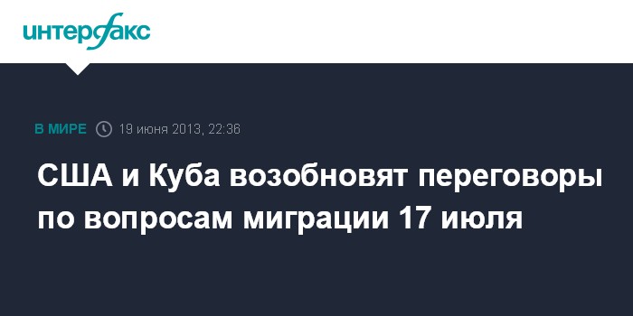 Вашингтон. 19 июня. INTERFAX.RU - Власти США и Кубы договорились возобновить двусторонние переговоры по вопросам миграции 17 июля 2013 года, сообщил в среду на условиях анонимности источник в американском госдепе.
