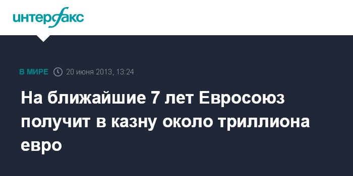 На ближайшие 7 лет Евросоюз получит в казну около триллиона евро