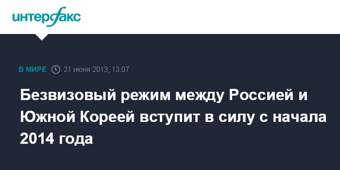 Безвизовый режим между Россией и Южной Кореей вступит в силу с начала 2014 года
