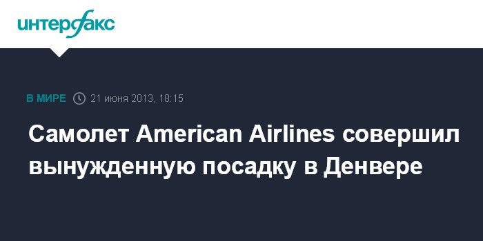 Вашингтон. 21 июня. INTERFAX.RU - Пассажирский лайнер авиакомпании American Airlines совершил экстренную посадку в городе Денвер на западе США, сообщила в пятницу представитель компании Дори Алаварес.