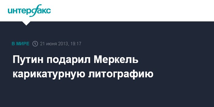 Санкт-Петербург. 21 июня. INTERFAX.RU - По завершении пресс-конференции президент России Владимир Путин передал Ангеле Меркель подарок - литографию, сделанную в конце XIX века, на которой в юмористическом тоне отражается подписание российско-германского торгового соглашения 1894 года.