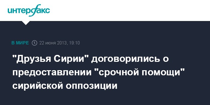 Доха. 22 июня. INTERFAX.RU - Министры иностранных дел 11-ти западных и арабских стран, входящие в "группу друзей Сирии", договорились предоставить сирийской оппозиции экстренную помощь, говорится в совместном заявлении участников по итогам встречи.