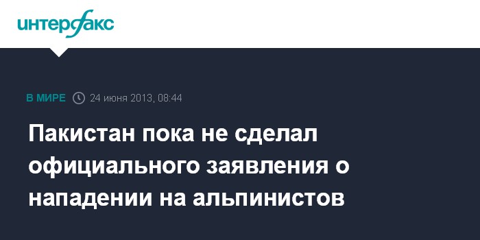 Москва. 24 июня. INTERFAX.RU - Власти Пакистана пока не сделали официального заявления по поводу нападения боевиков на группу альпинистов в одном из районов страны, сообщили в понедельник "Интерфаксу" в посольстве России в Исламабаде.