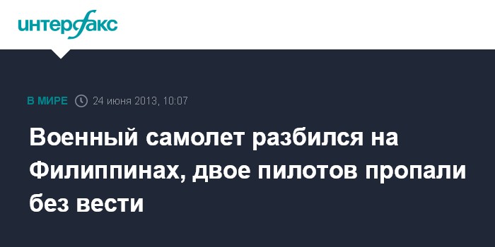 Манила. 24 июня. INTERFAX.RU - Военное командование Филиппин в понедельник объявило пропавшими без вести двух пилотов самолета OV-10 Bronco, не вернувшегося на авиабазу на острове Палаван.