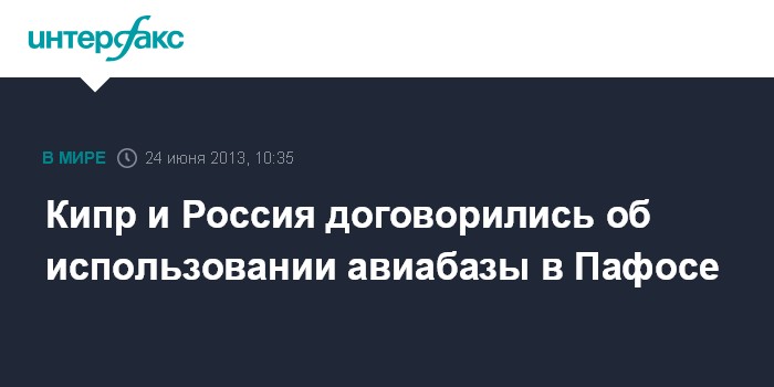 Афины. 24 июня. INTERFAX.RU - Москва и Никосия достигли договоренности об использовании Россией авиабазы "Андреас Папандреу" в городе Пафос, сообщает кипрская газета Phileleftheros.