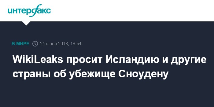 Вашингтон. 24 июня. INTERFAX.RU - Представители веб-сайта WikiLeaks отправили официальный запрос Исландии и ряду других государств от имени бывшего сотрудника ЦРУ Эдварда Сноудена о предоставлении ему политического убежища, сообщила в понедельник представитель WikiLeaks.