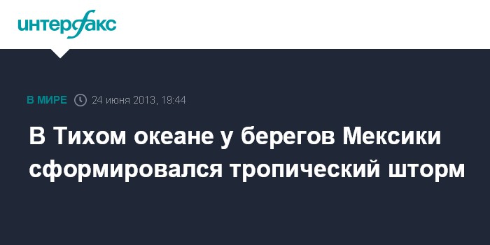 Мехико. 24 июня. INTERFAX.RU - Тропический шторм "Косме", угрожающий побережью Мексики, сформировался в Тихом океане и может в ближайшие часы превратиться в ураган, сообщили в понедельник специалисты из Национальной метеорологической службы Мексики.