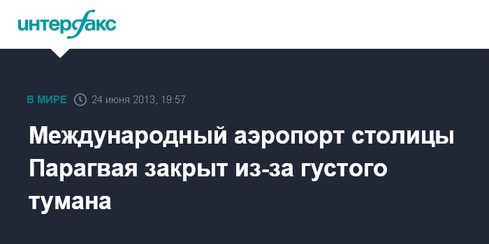 Буэнос-Айрес. 24 июня. INTERFAX.RU - Международный аэропорт Сильвио Петтиросси в Парагвае будет закрыт в течение всего дня по причине густого тумана, сообщили в понедельник в администрации парагвайского аэропорта.