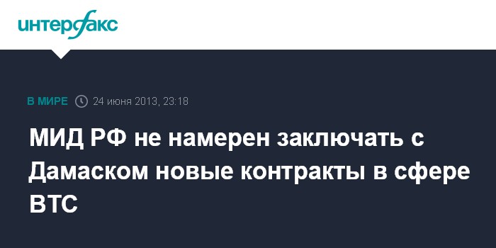 Женева. 24 июня. INTERFAX.RU - Нового в сфере ВТС между Москвой и Дамаском ничего нет, а заключенные ранее контракты будут выполняться, заявил замглавы МИД РФ Михаил Богданов.
