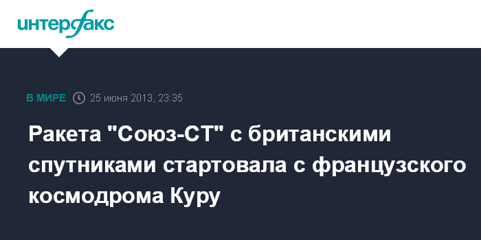 Москва. 25 июня. INTERFAX.RU - Российская ракета-носитель "Союз-СТ" с четырьмя космическими аппаратами О3b британской компании O3b Networks Ltd стартовала с космодрома Куру (Гвианский космический центр, Французская Гвиана, Южная Америка).