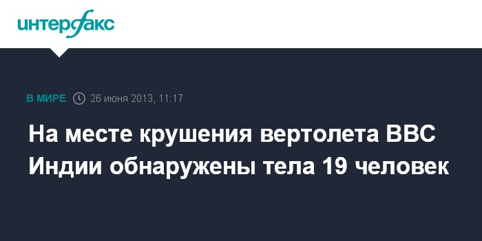Дели. 26 июня. INTERFAX.RU - Индийские военные обнаружили тела 19 человек на месте крушения вертолета, проводившего спасательную операцию после наводнения в штате Уттаркханд.