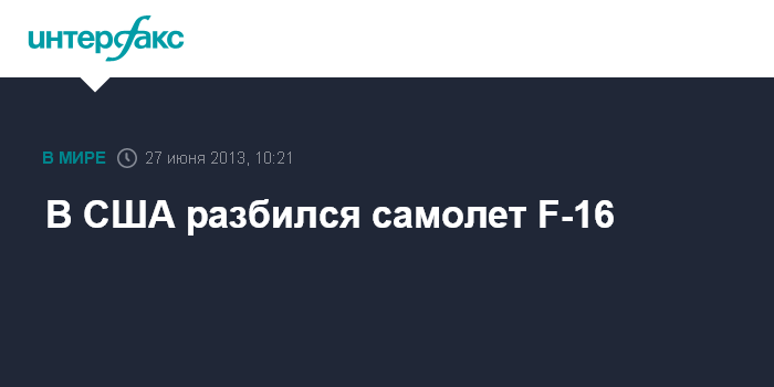 Вашингтон. 27 июня. INTERFAX.RU - Истребитель F-16 разбился в ходе учебного полета неподалеку от базы ВВС США Люк в штате Аризона, сообщила в четверг газета Washington Post.