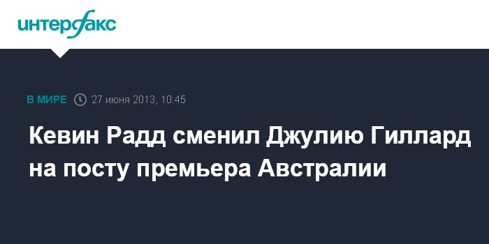 В сообщениях отмечается, что почти ровно три года назад Гиллард по итогам голосования стала лидером лейбористов, победив Радда. После этого она сменила его и на посту премьера.