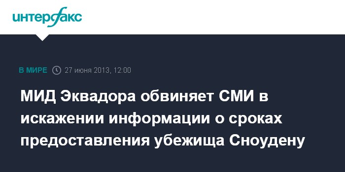 Вашингтон/Москва. 27 июня. INTERFAX.RU - Глава МИД Эквадора Рикардо Патиньо заявил, что некоторые СМИ исказили его высказывание о сроках рассмотрения прошения экс-сотрудника ЦРУ Эдварда Сноудена о предоставления ему убежища.