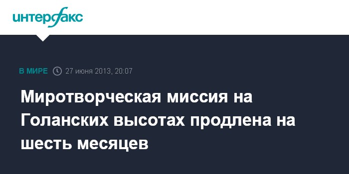 Миротворческая миссия на Голанских высотах продлена на шесть месяцев