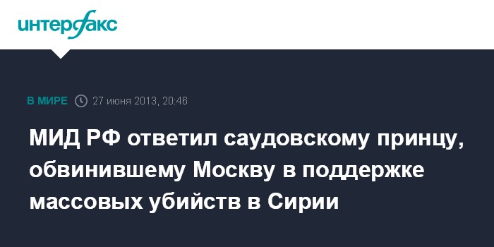 "Саудовский принц, по сути, обвинил Россию в неограниченной военной поддержке массовых убийств в Сирии и потребовал остановить якобы осуществляемое Москвой "лихорадочное вооружение сирийского режима и орд поддерживающих его иностранных сил". По его словам, из России в Сирию идет "нескончаемый поток денег и оружий", содействующий "геноциду сирийского народа", отмечается в комментарии Лукашевича.