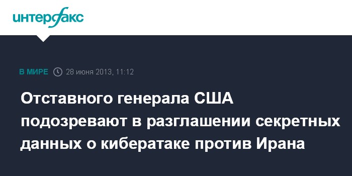 Генерала в отставке подозревают в разглашении секретных данных о кибератаке против Ирана