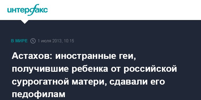 Астахов: иностранные геи, получившие ребенка от российской суррогатной матери, сдавали его педофилам