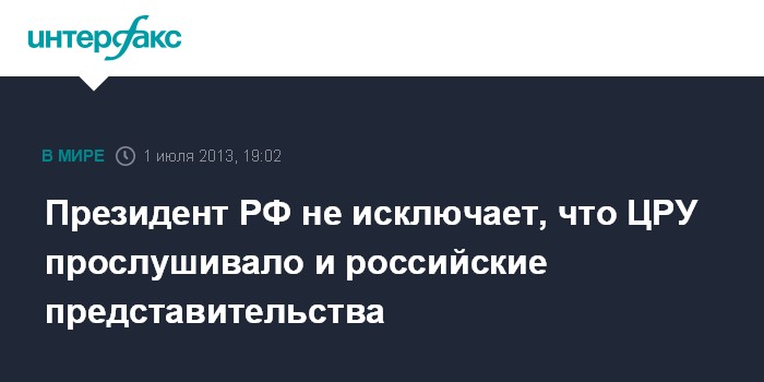 "Эта информация от господина Сноудена, насколько я понимаю. В этой информации ничего о попытках прослушивания российских официальных представительств нет. Но не исключаю, что это возможно, и такие доказательства у нас у самих раньше были. Мне бы не хотелось сейчас углубляться в это. Это дело для оценки на профессиональном уровне", - заявил российский президент.