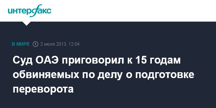 Суд ОАЭ приговорил к 15 годам обвиняемых по делу о подготовке переворота