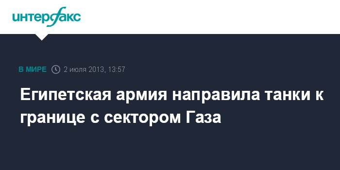 Иерусалим. 2 июля. NTERFAX.RU - Армия Египта усилила присутствие на границе с сектором Газа на Синайском полуострове, направив туда танки, сообщает израильская газета Yedioth Ahronoth со ссылкой на очевидцев.