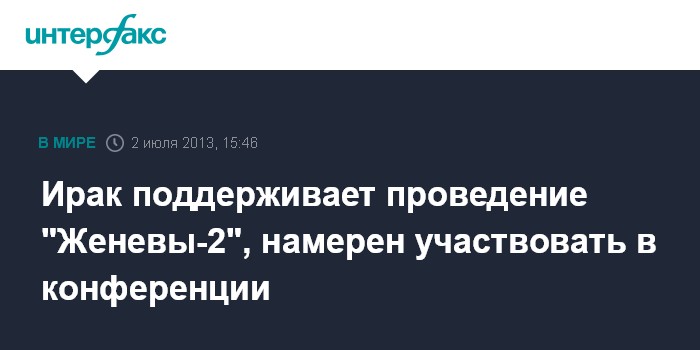 Москва. 2 июля. INTERFAX.RU - Ирак поддерживает российско-американскую инициативу по проведению международной конференции по Сирии "Женева-2", намерен в ней участвовать, заявил иракский премьер-министр Нури аль-Малики.