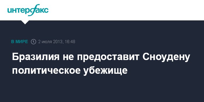 Бразилиа. 2 июля. INTERFAX.RU - Власти Бразилии отклонили запрос бывшего агента ЦРУ Эдварда Сноудена о предоставлении убежища, сообщил во вторник журналистам представитель МИД страны.