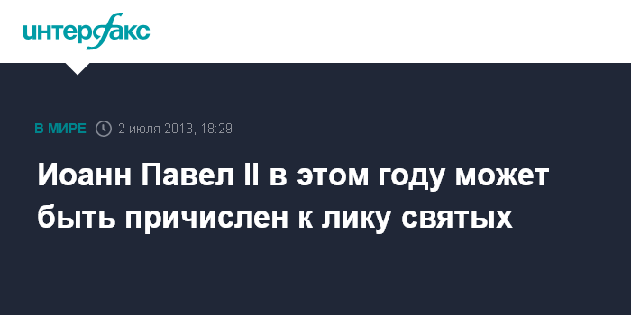 Рим. 2 июля. INTERFAX.RU - Конгрегация по канонизации святых Ватикана признала за бывшим главой римской католической церкви Иоанном Павлом II совершение второго чуда, сообщает во вторник итальянская газета La Stampa.