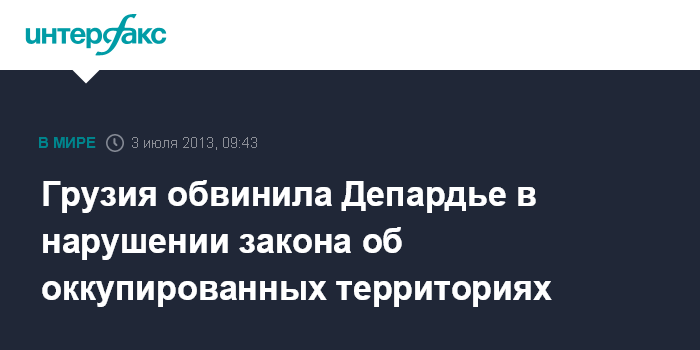 Тбилиси. 3 июля. INTERFAX.RU - Киноактер Жерар Депарьде нарушил закон "об оккупированных территориях", посетив без ведома грузинских властей на этой неделе Абхазию, заявила в среду журналистам заместитель госминистра по вопросам реинтеграции Грузии Кетеван Цихелашвили.