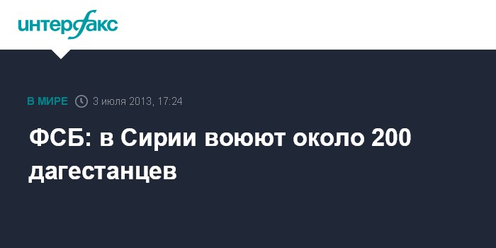 Махачкала. 3 июля. INTERFAX.RU - По данным УФСБ по Дагестану, для участия в боевых действиях на территории Сирии из Дагестана выехали более 200 человек, заявил в среду на заседании республиканской антитеррористической комиссии начальник УФСБ Андрей Конин.