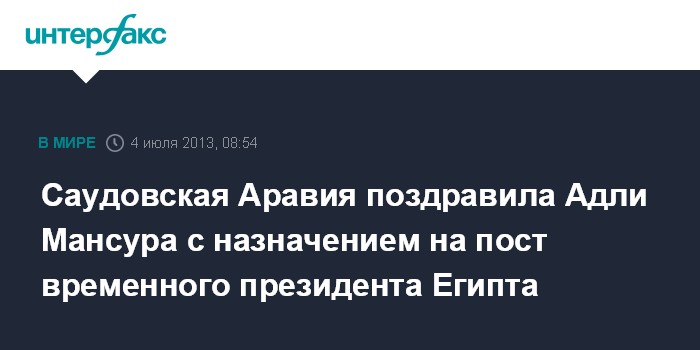 Саудовская Аравия поздравила Адли Мансура с назначением на пост временного президента Египта