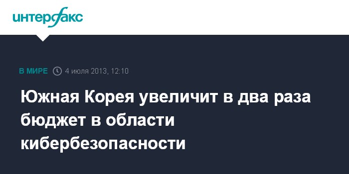 Сеул. 4 июля. INTERFAX.RU - Власти Южной Кореи собираются удвоить бюджет в сфере безопасности в Интернете, сообщает в четверг министерство образования, науки и техники.