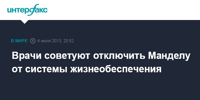 В сообщениях приводятся выдержки из переданных в суд документов, в которых говорится, что Мандела "находится в перманентном вегетативном состоянии". "Врачи посоветовали семье Манделы отключить его от аппарата жизнеобеспечения", - говорится в документах, датированных 26 июня.