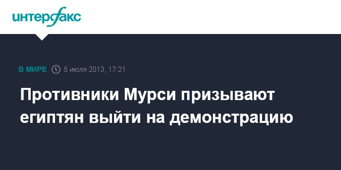 Каир. 5 июля. INTERFAX.RU - Коалиция, объединяющая противников отстраненного от власти президента Египта Мухаммеда Мурси, призывала египтян в пятницу выйти на демонстрации.